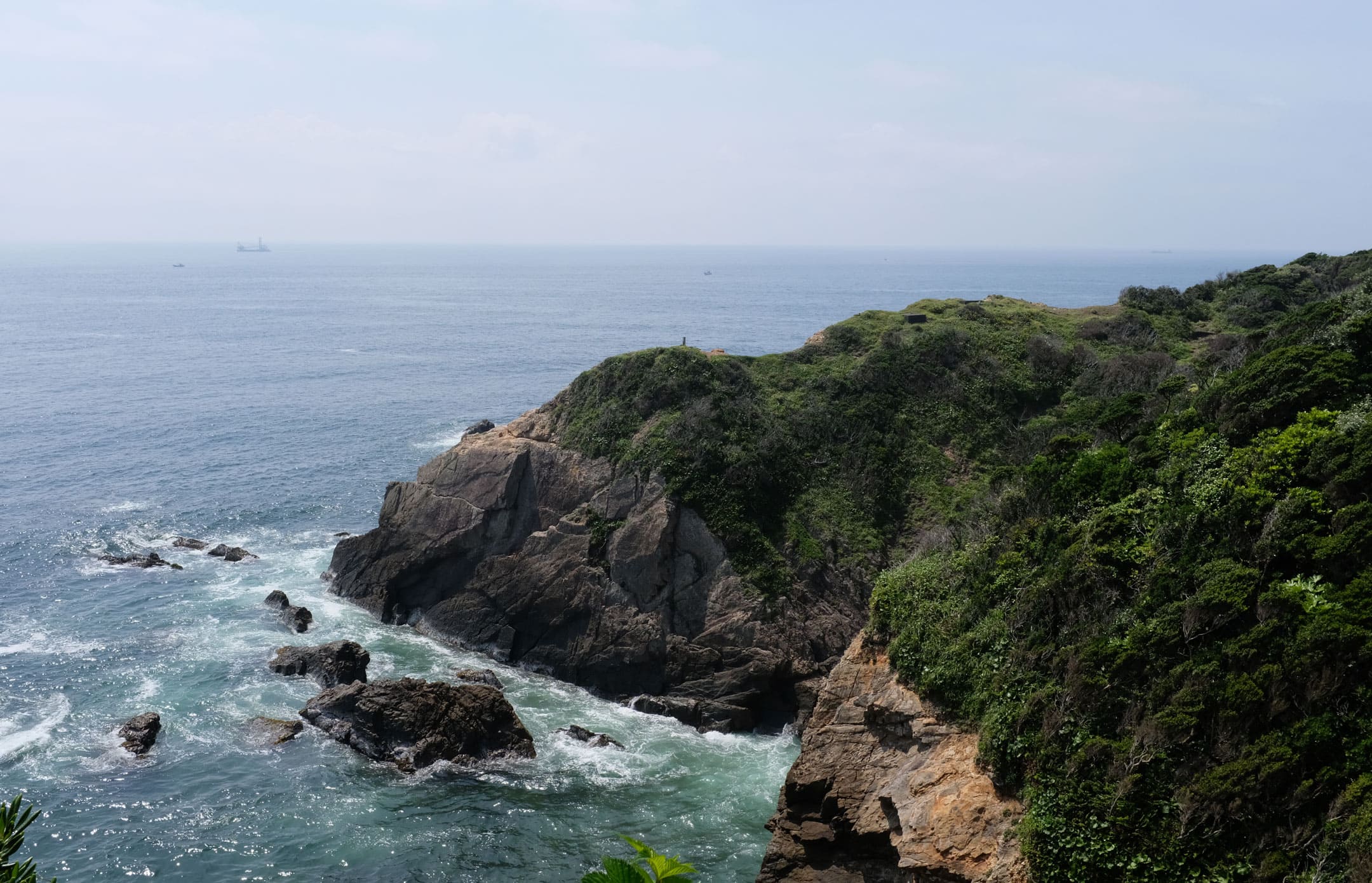 大王崎は、伊勢志摩国立公園内の志摩半島の東端に位置し、雄大な太平洋の波を切り分けるような岬です。